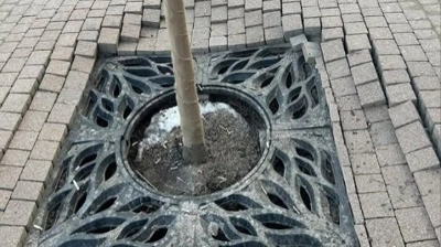 Желідегі суреттен жаңадан отырығызылған көшет жанындағы тротуардың опырылып кеткенін көруге болады.