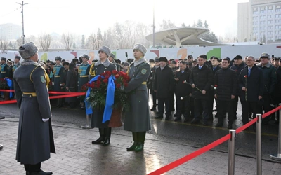 Алматылықтар «Тәуелсіздік» монументіне гүл шоқтарын қойды