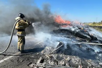 ОРАЛ. ҚазАқпарат - Батыс Қазақстан облысында жүк көлігі өртеніп, жалын құрғақ шөпке ауысты, деп хабарлайды ҚазАқпарат тілшісі.