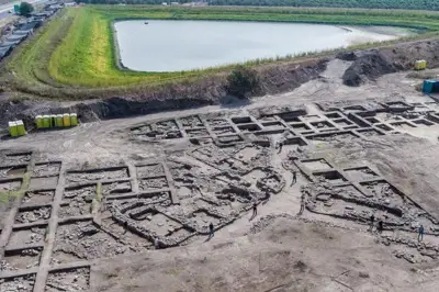 Археологтардың бұл өңірдегі қазба жұмыстары екі жарым жылдан астам жалғасып жатыр. Жұмысқа 5 мың жасөспірім мен еріктілер жұмылдырылған. Қоныс жаңа шоссенің құрылысы кезінде табылған.