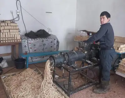 Жаңатоған ауылында тұратын немере ағайынды Думан Қожекин мен Мейірлан Бодау үйінің ауласында кір сабын шығаратын шағын цех ашты. Бұл іске кіріспес бұрын олар Алматыда курстарда оқып, интернет арқылы осы тауашаны зерттеген екен. Өз қаражатын салып, олар Қырғызстанда қарапайым ет тартқышпен жұмыс істеу принципінің ұқсастығына байланысты ет тартқыш деп аталатын аппаратты сатып алды.