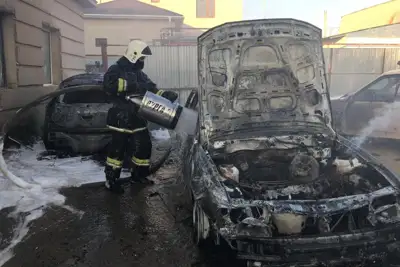 Қызылордада бір аулада тұрған үш көлік өртенді