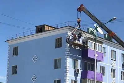 Қызылордада көпқабатты үйдің қабырғасына Абайдың бейнесі салынуда