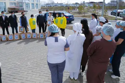 Бүгін басталған «30 игі іс» республикалық акциясы барысында жасотандықтар елорданың және еліміздің басқа өңірлерінің медицина қызметкерлеріне «алғыс пакеттерін» таратуды ұйымдастырды. Олардың әрқайсында дәрумендерге бай пайдалы өнімдер жиынтығы бар.