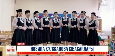 Нәзипа Құлжанованың киім үлгісіндей форма киген арулар Jibek Joly телеарнасының «Бүгін LIVE» бағдарламасына онлайн байланысқа шығып, сұхбат берді.