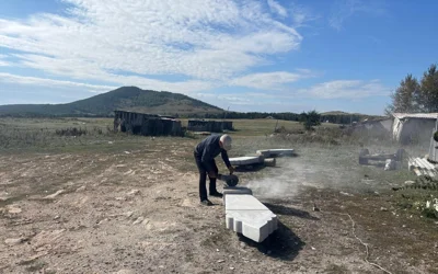 Бұл тасты ана жақта карьер бар, содан аршып алу керек. Екі-үш жігіттен жүреді. Қопарып, тазалап, кесеміз, сосын артып әкеліп, үйлерінің қасында істейді. Бір-бірімізге көмектесеміз, әкелісеміз. Шаңның ішінде отыру оңай ма, - дейді Қорғанбек Әбілов.