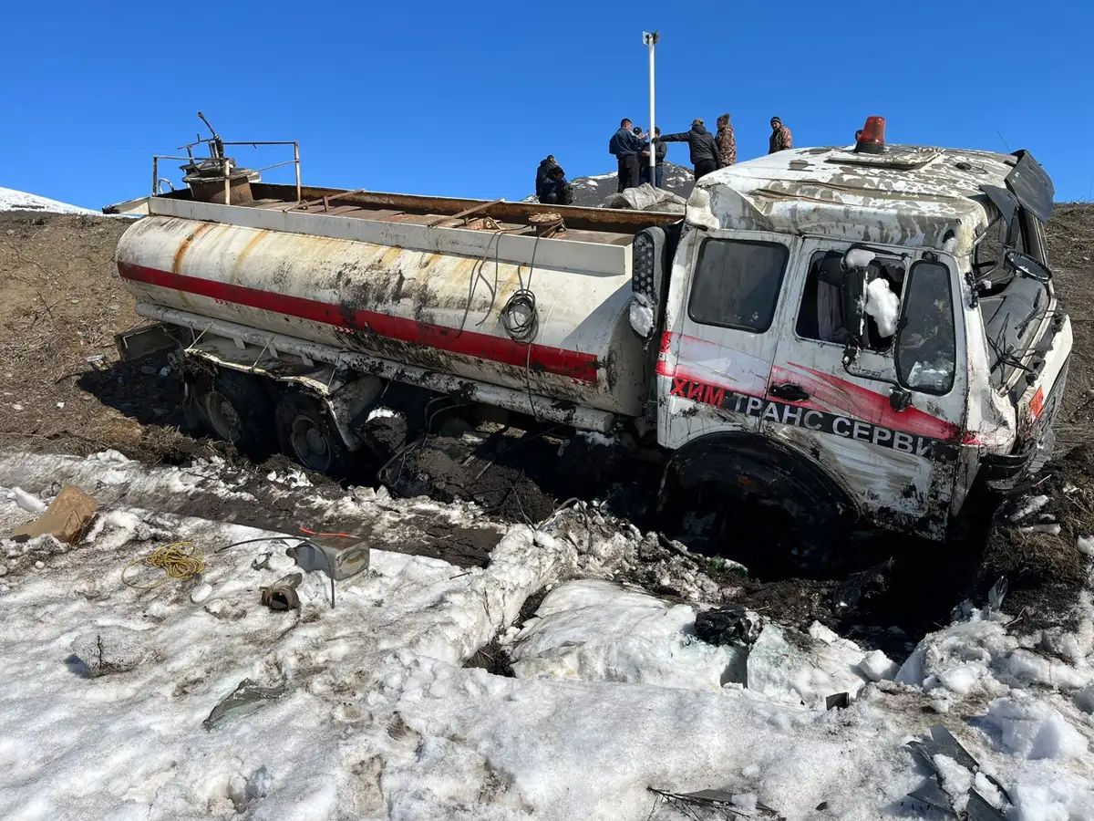 ШҚО-да аударылып қалған ауыр жүк көлігінен 300 литр күкірт қышқылы төгілген